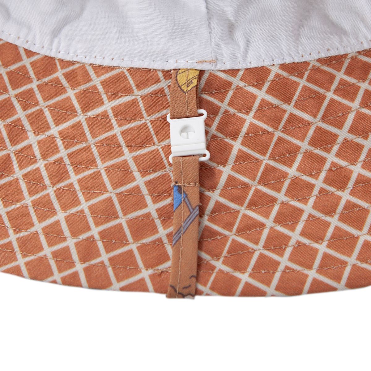 Made for little builders and busy imaginations! This chestnut bucket hat features a playful construction-themed print with hard hats, trucks, and tools on the outside, paired with a classic chestnut and cream check on the inner brim. Both original prints are exclusively designed by Jacinta Weir of Two Little Ducklings.