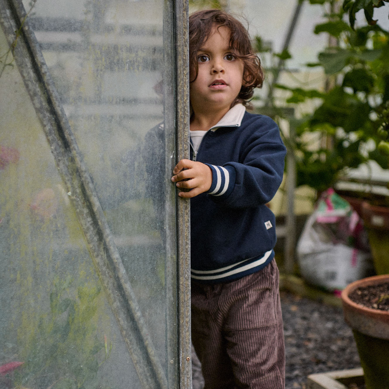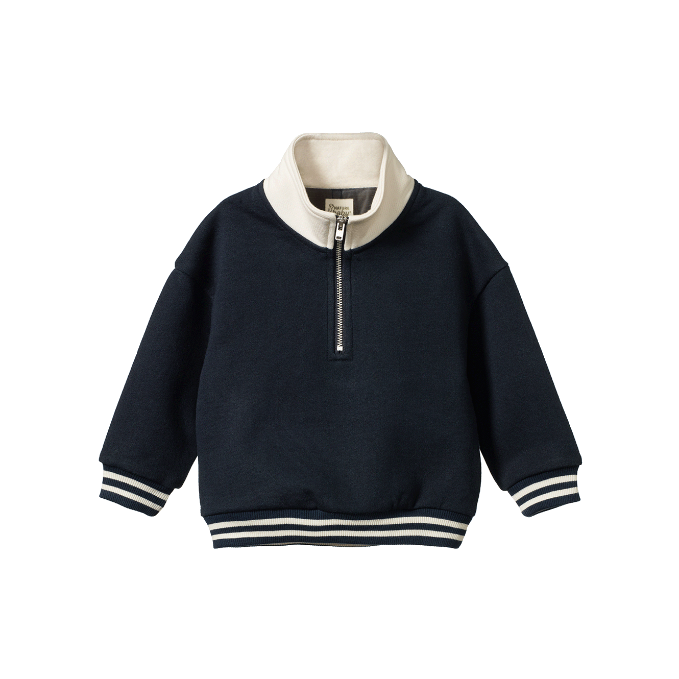 The Camper Sweater features a zip front opening that can be worn open to create a mock style collar. Made from 100% organic cotton brushed sweatshirting to see you through all seasons.