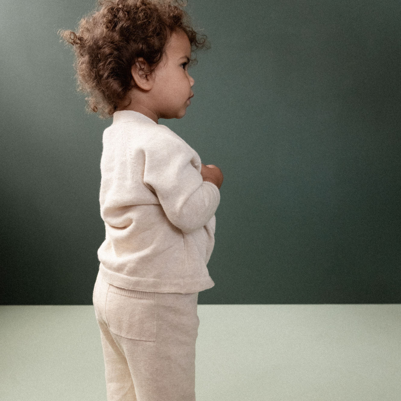 The Cecil Pant is made from soft organic cotton knit with a wide leg fit for easy movement and all-day wear. Featuring a gentle elastic waistband with a functional drawcord and a sweet pocket detail at the back. Pair with our Cecil Cardigan for a cosy outfit.