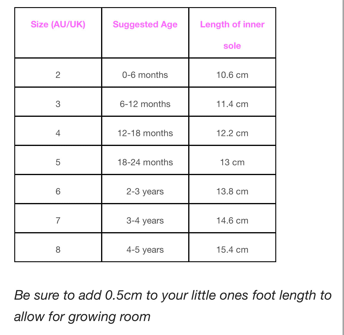 Size 3-5 customised alphabet rubber flexible sole to allow your little ones feet to develop naturally and safely
