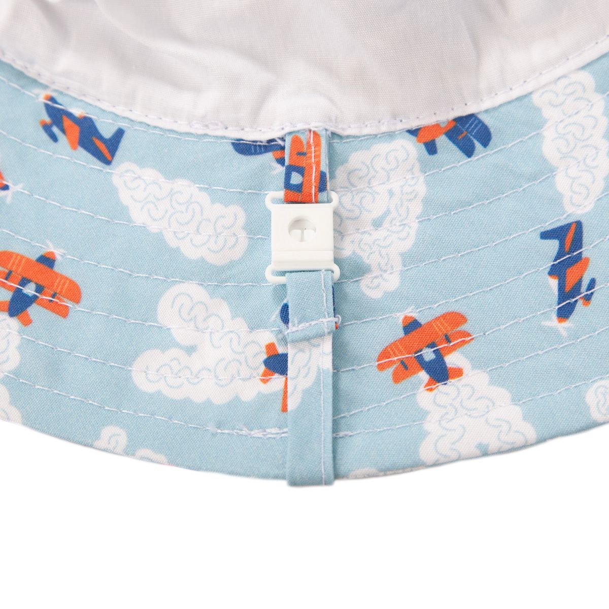 Perfect for little adventurers! This infant sunhat features a cute planes and clouds print, lovingly designed by Jacinta Weir of Two Little Ducklings.