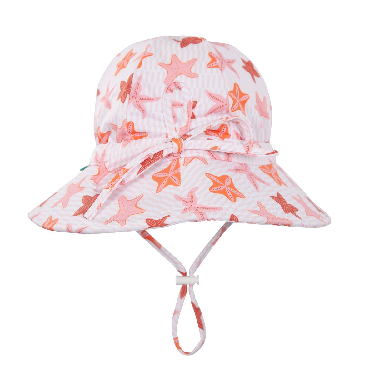 Dive into summer with this stunning pink, orange, and red starfish print swim hat, designed by Jacinta Weir from Two Little Ducklings. Perfect for keeping little heads shaded during all water adventures.