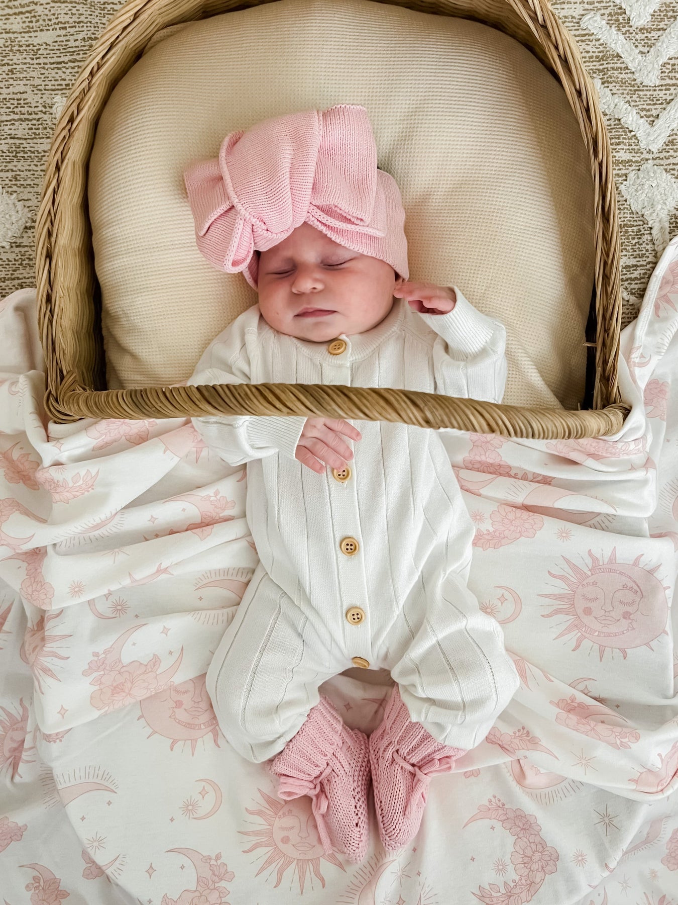 Stay cosy this winter with our NEW Knitted Oversized Topknot. Made from 100% cotton, this is a brand new style of topknots inspired by cosy knit season. Soft, stretchy and incredibly comfortable, this accessory will keep your little love warm and cute all winter. Still the same size and design as our much-loved oversized topknots.