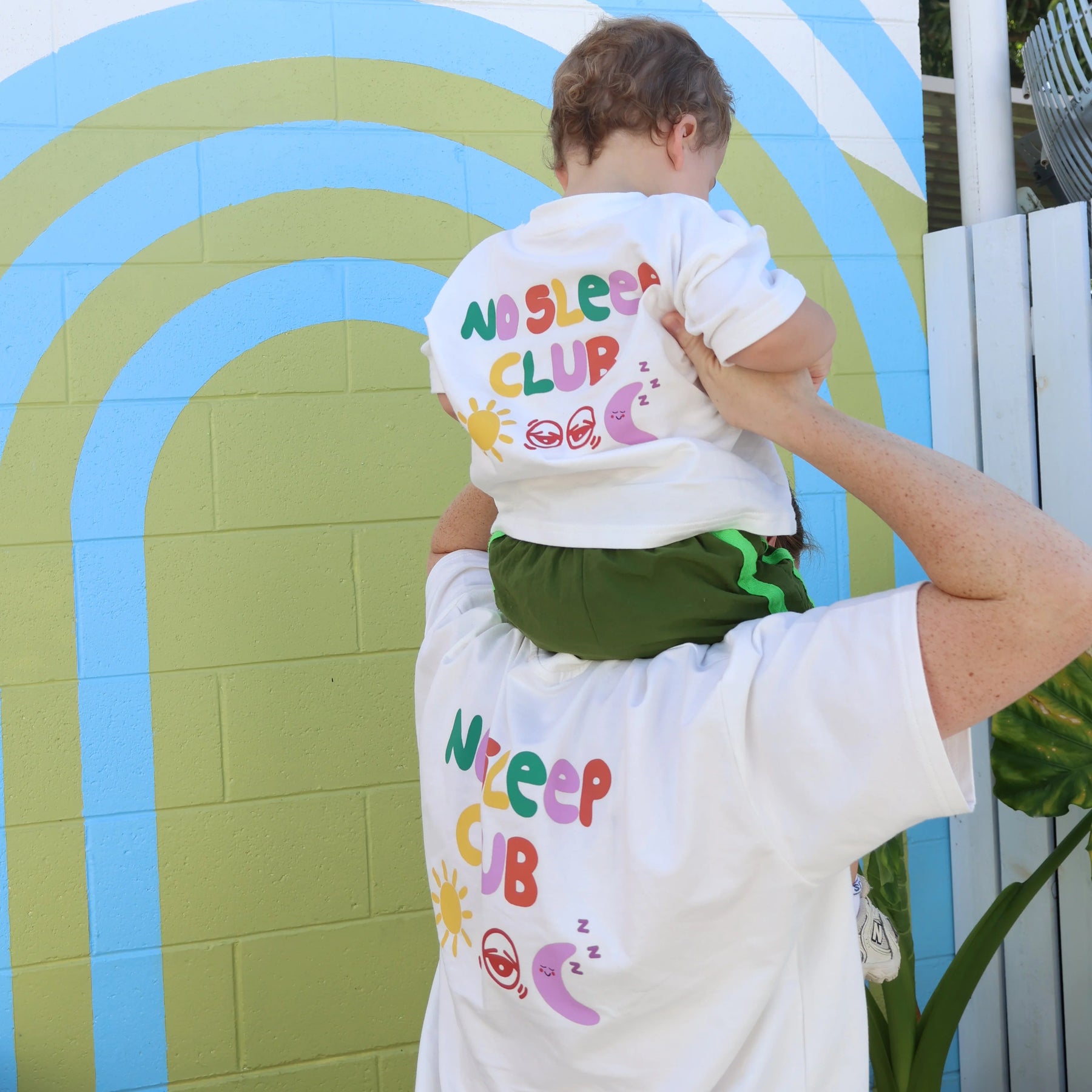 Our No Sleep Club tee are made with a unisex relaxed fit, Mum's if you like your tee's to be less oversized please size down.
