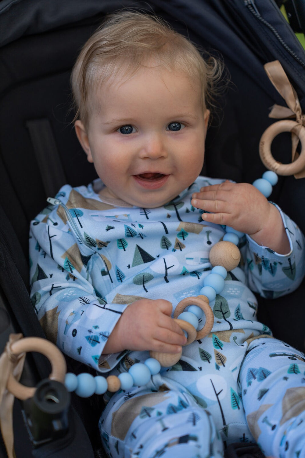 Simply tie the garland securely to your pram/stroller or car seat. To clean wipe with a soft, damp cloth. Clean before initial use. To protect the beechwood, do not soak in water.