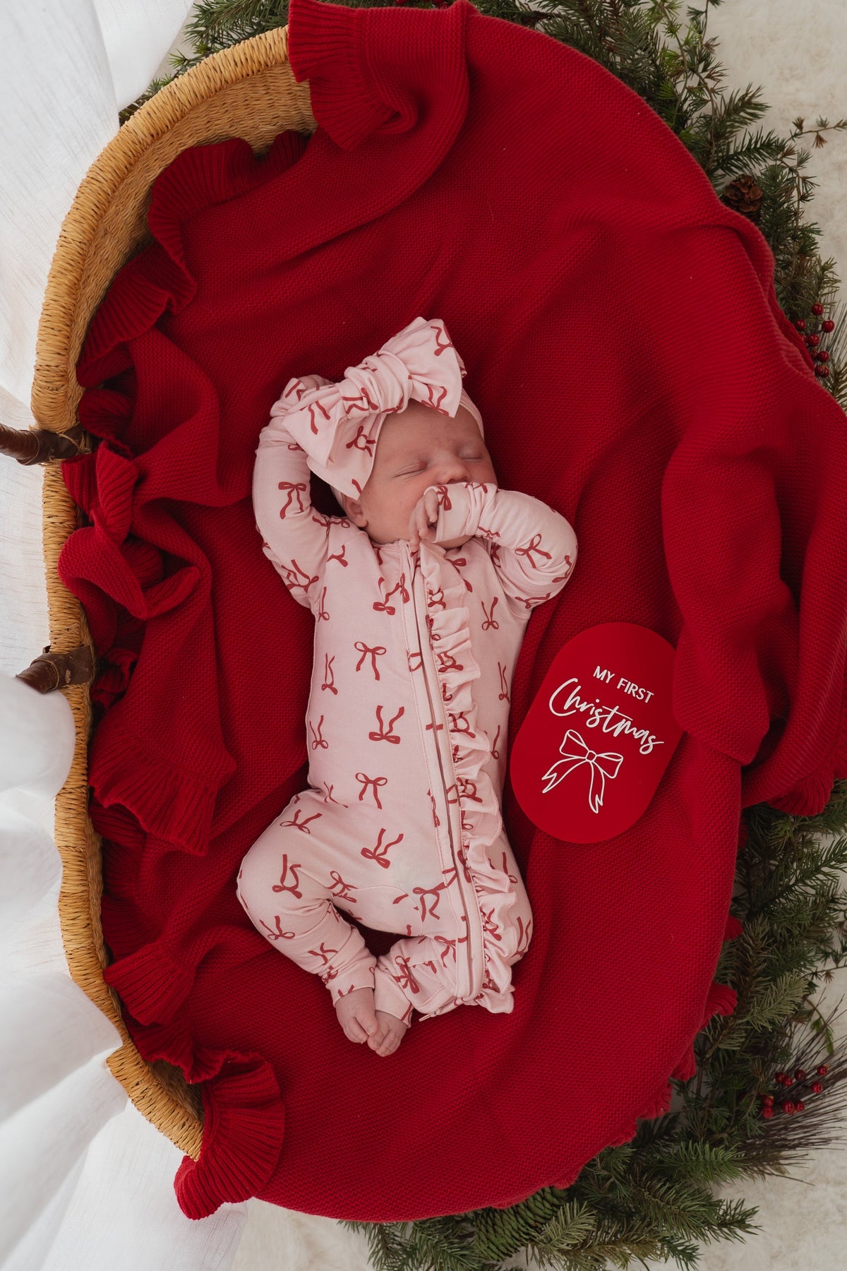 Introducing our Frill Zip Romper in the charming Red Bows design – the perfect blend of style, comfort, and practicality for your little one.