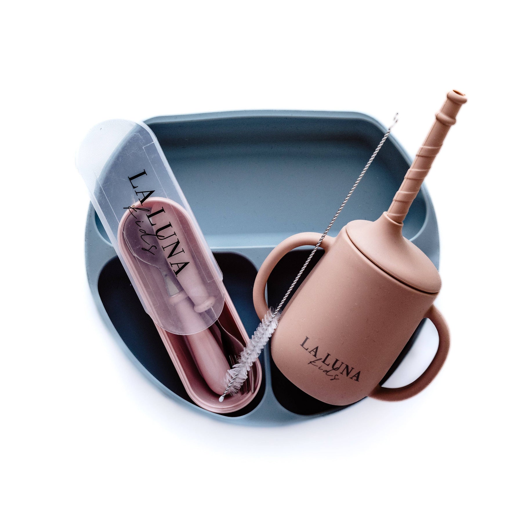 This clever plate designed by La Luna Kids helps your little one learn to feed themselves with dividers and raised edges to prevent spillage and allow food to be picked up with ease.