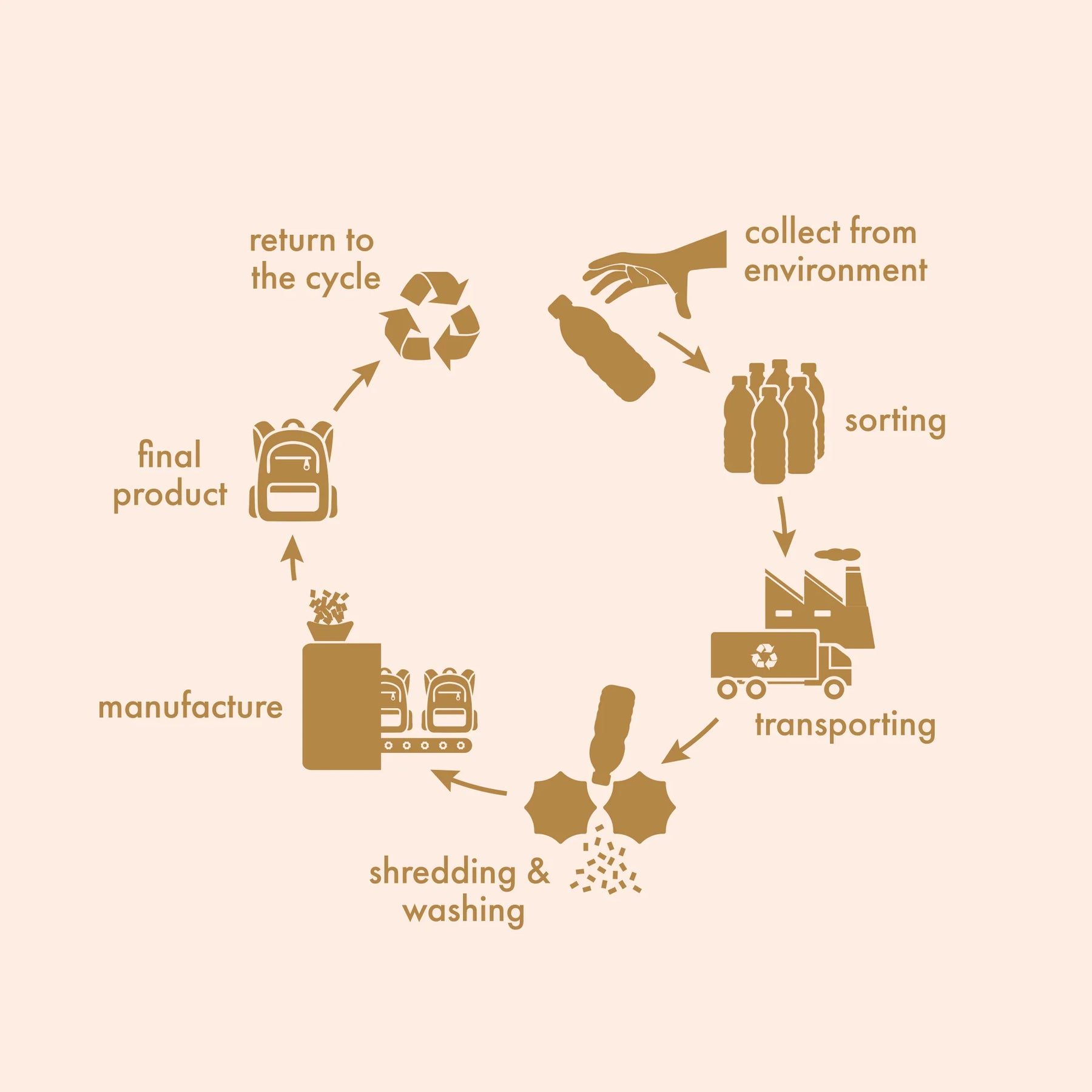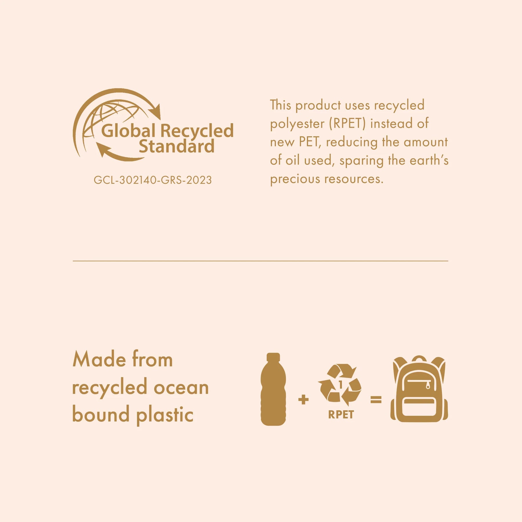 Our backpacks are responsibly made from recycled ocean bound plastic.